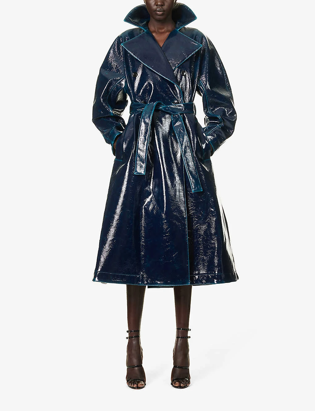 - Regular fit, double breasted, notched lapels, long sleeves, two slip pockets at front, crease texture, patent finish, lined