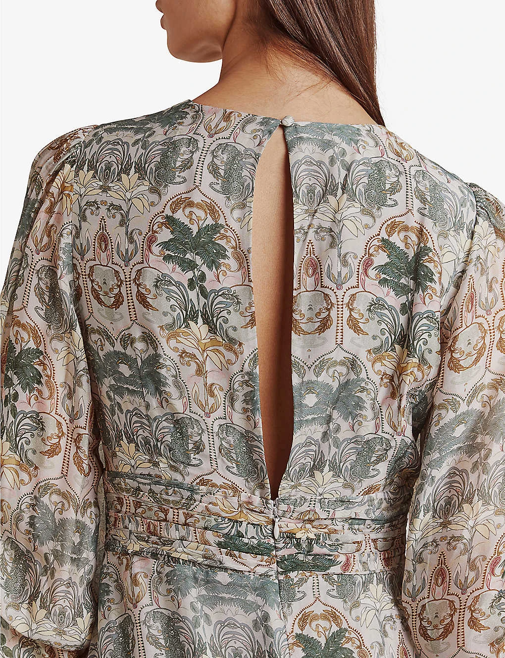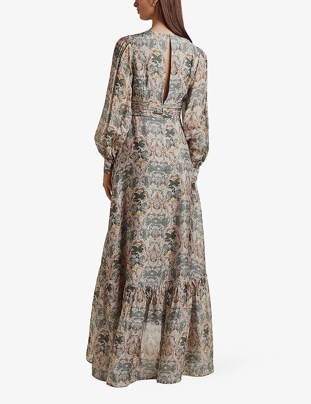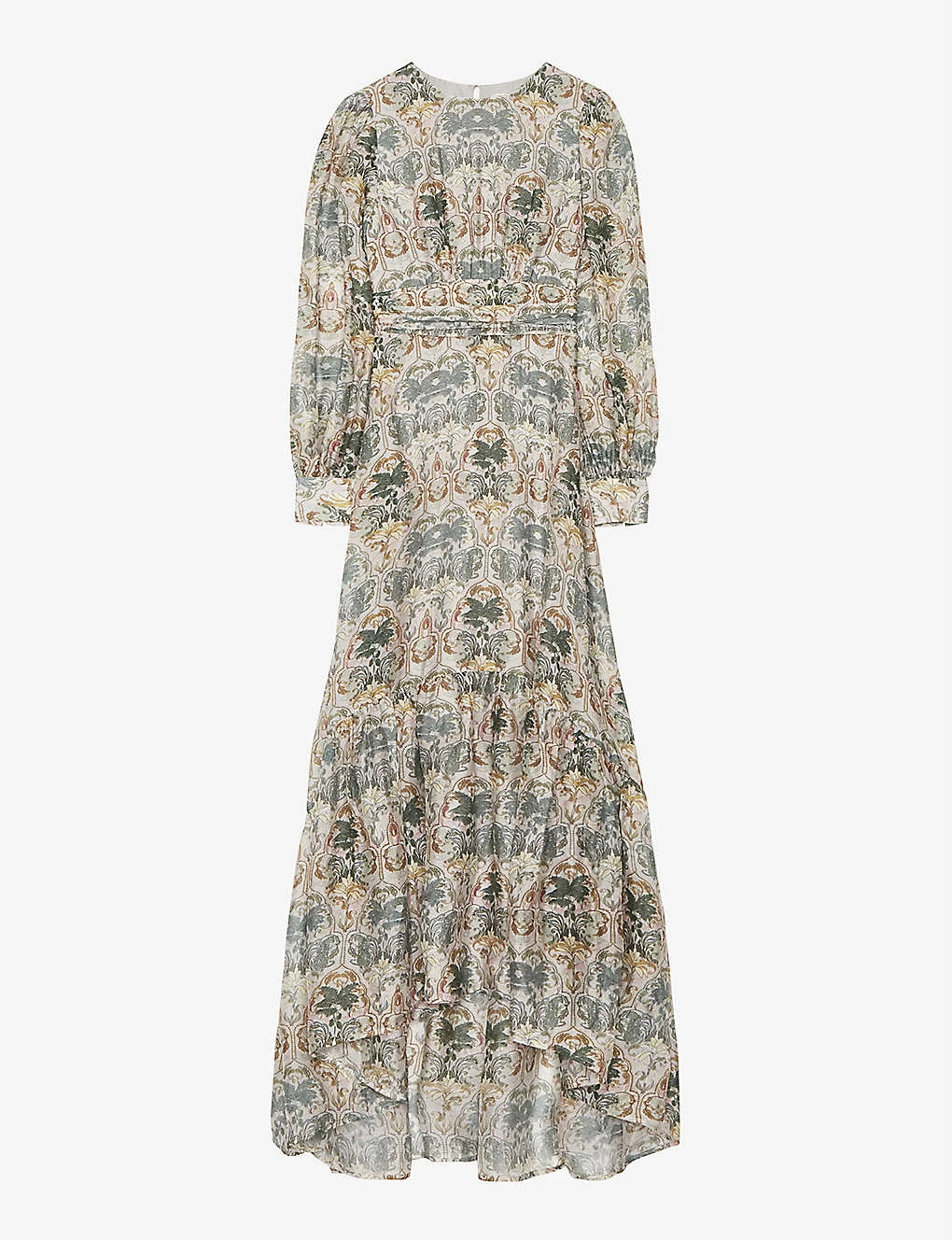 - Round neck, long balloon sleeves all-over graphic-print, frilled hem, maxi length