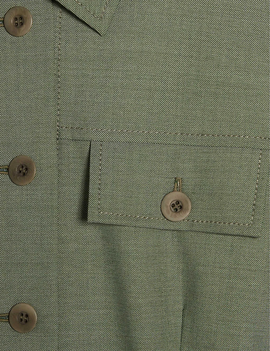 - Exposed button fastening at front