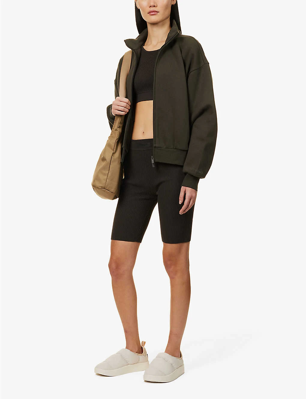 - Regular-fit, scoop neck, shoulder straps, all-over ribbed texture, rubberised brand badge at back, ribbed trims