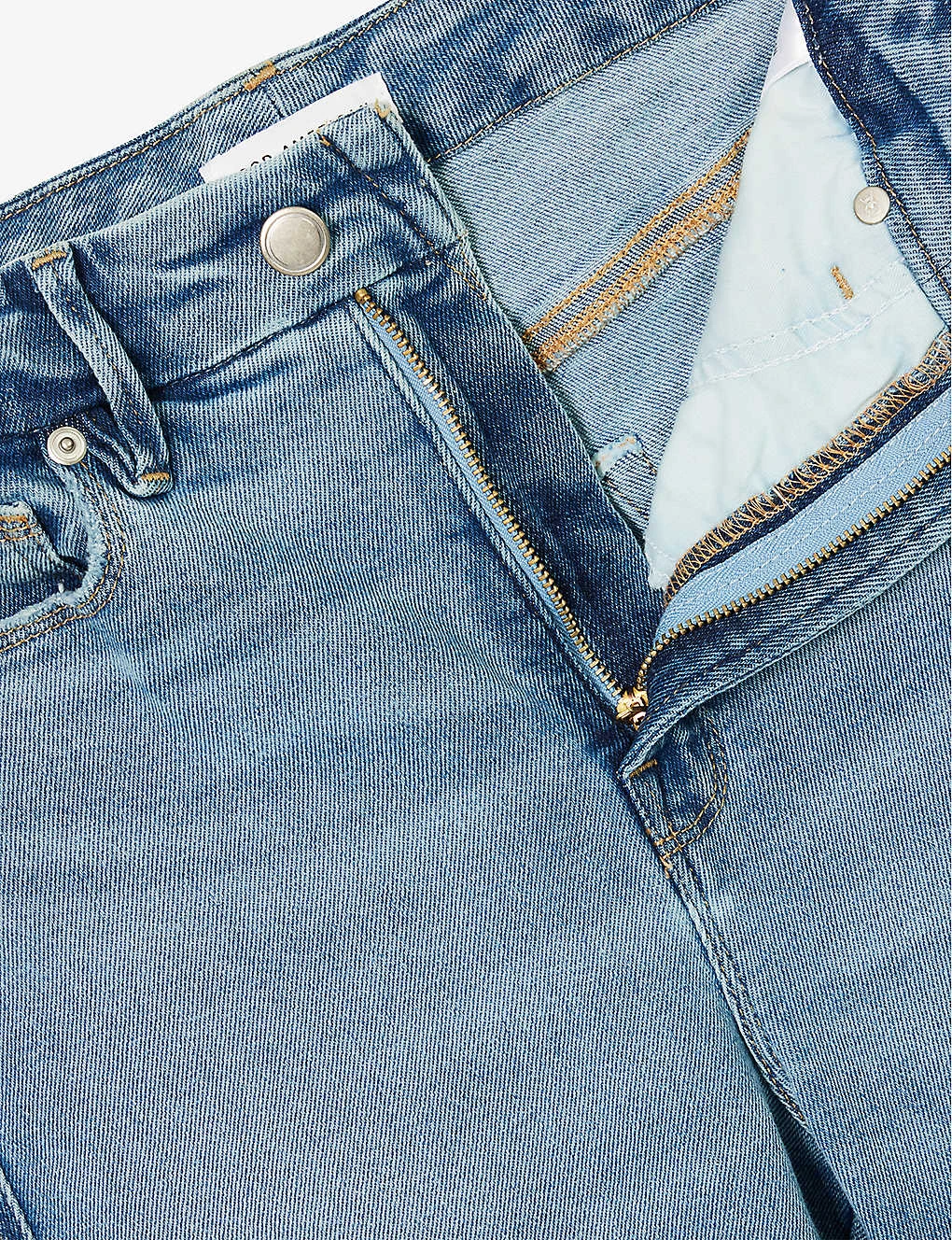 - Exposed button and concealed zip-fly fastening at front