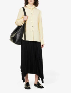 - Exposed button, concealed hook-and-eye and zip-fly fastening at front