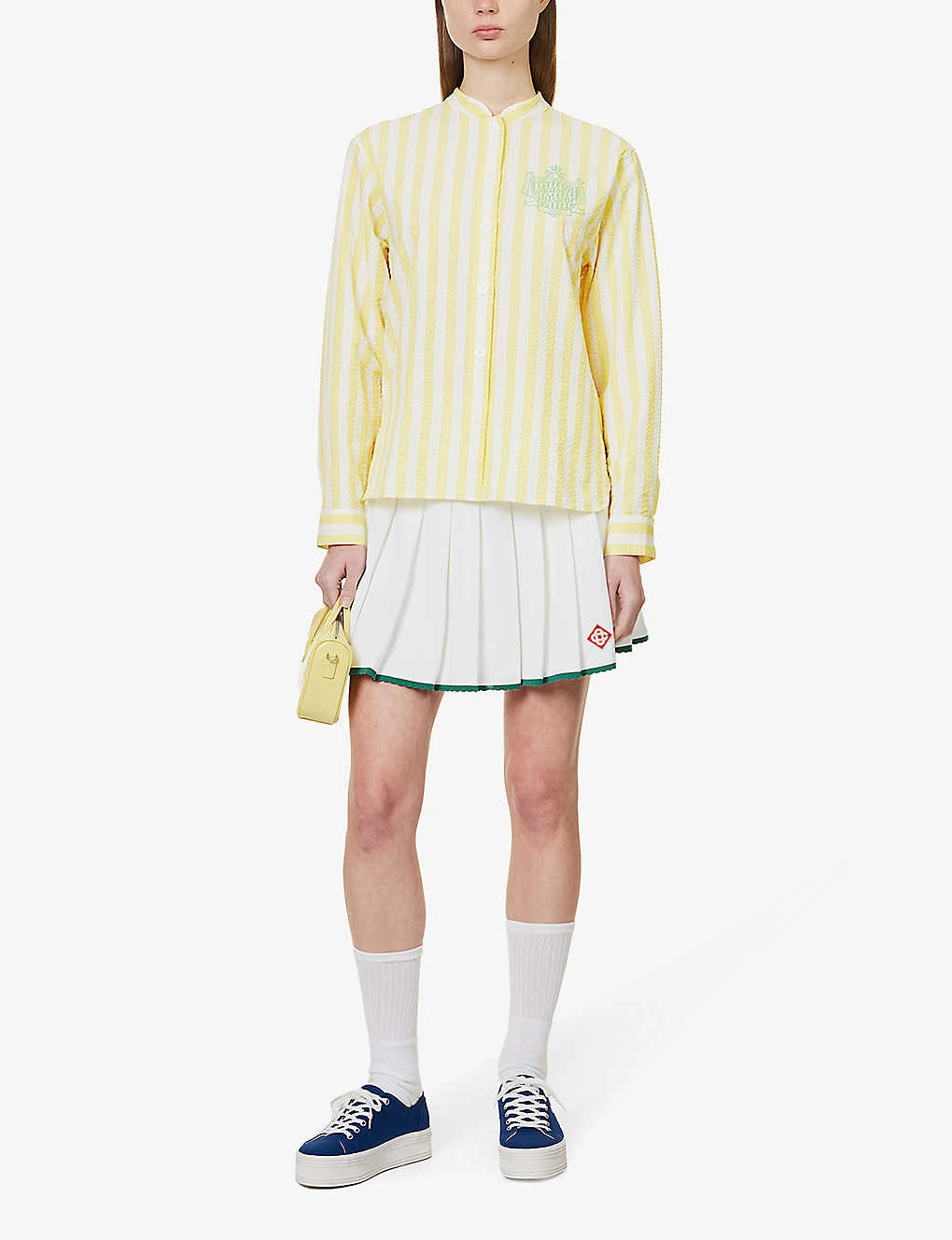 - Regular-fit, mandarin collar, button fastening at front, straightened cuffs, all over striped print, brand crest print at chest