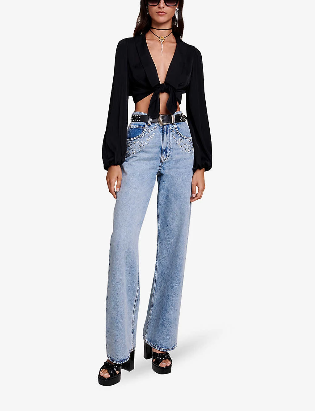 Be the first to review “Maje Ciblanca Sailor-collar Tie-front Satin Top” Cancel reply