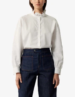 - Exposed button and concealed zip-fly fastening at front