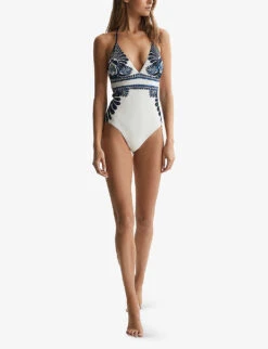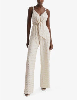 Reiss Ripley Triangle-shape Chain-embellished Stretch-woven Bikini Top