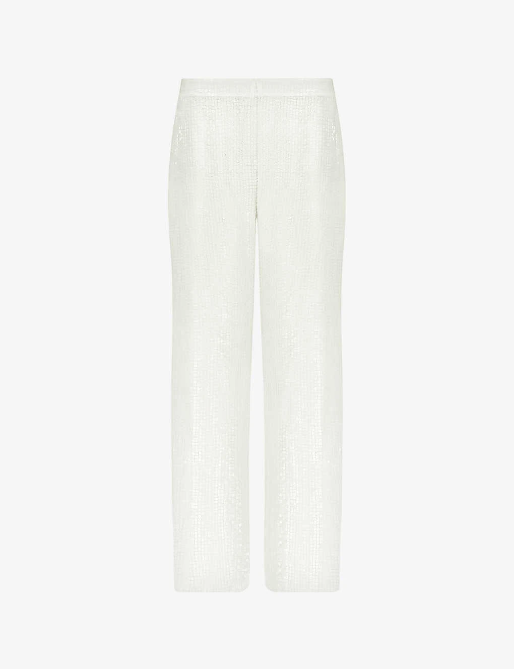 - Structured waistband, mid rise, straight leg, all-over sequin pattern