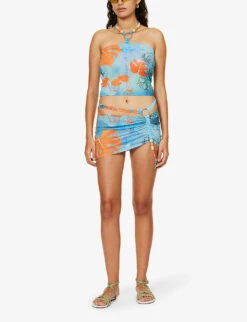 Jaded London Ruched Bead-embellished Stretch-mesh Mini Skirt