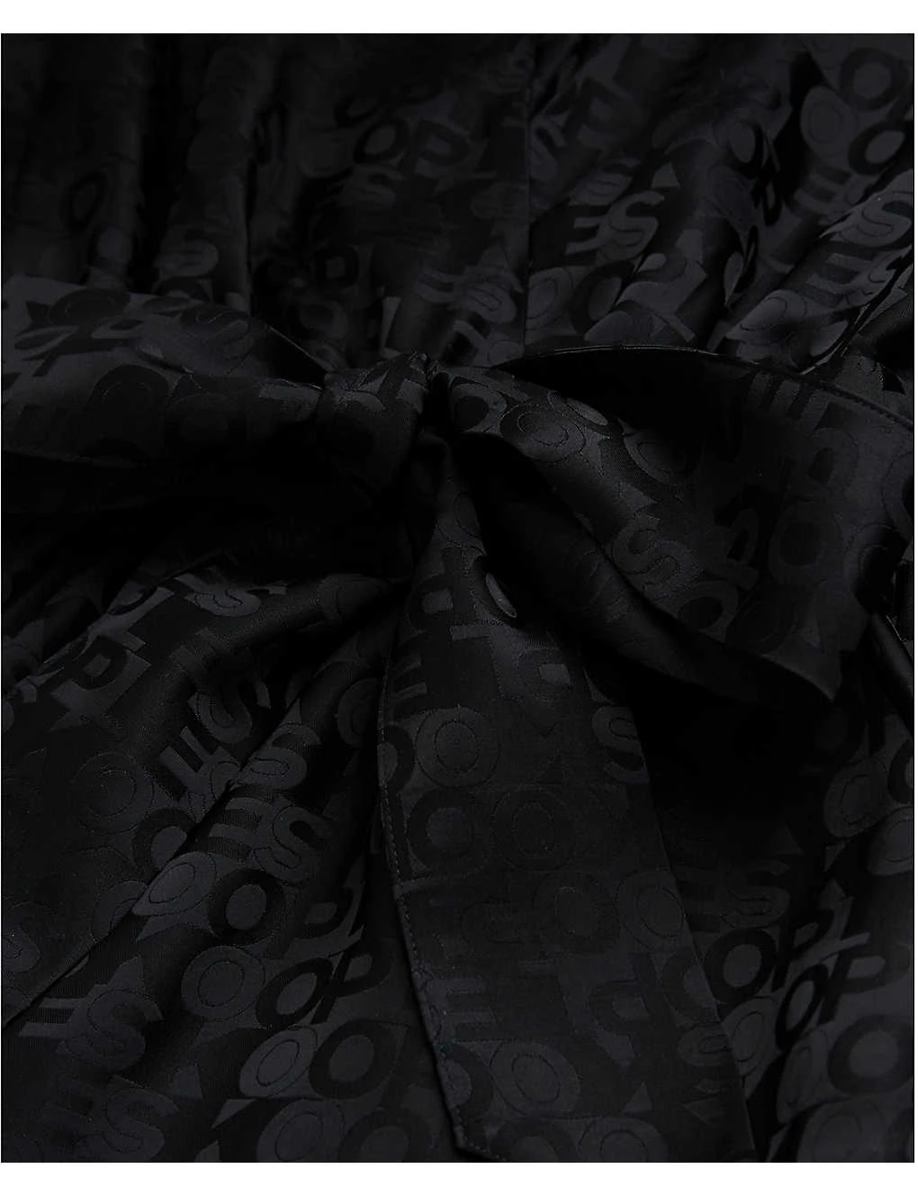 - Sweetheart neckline, long sleeves, jacquard logo, self-tie belt at the waist, straight leg