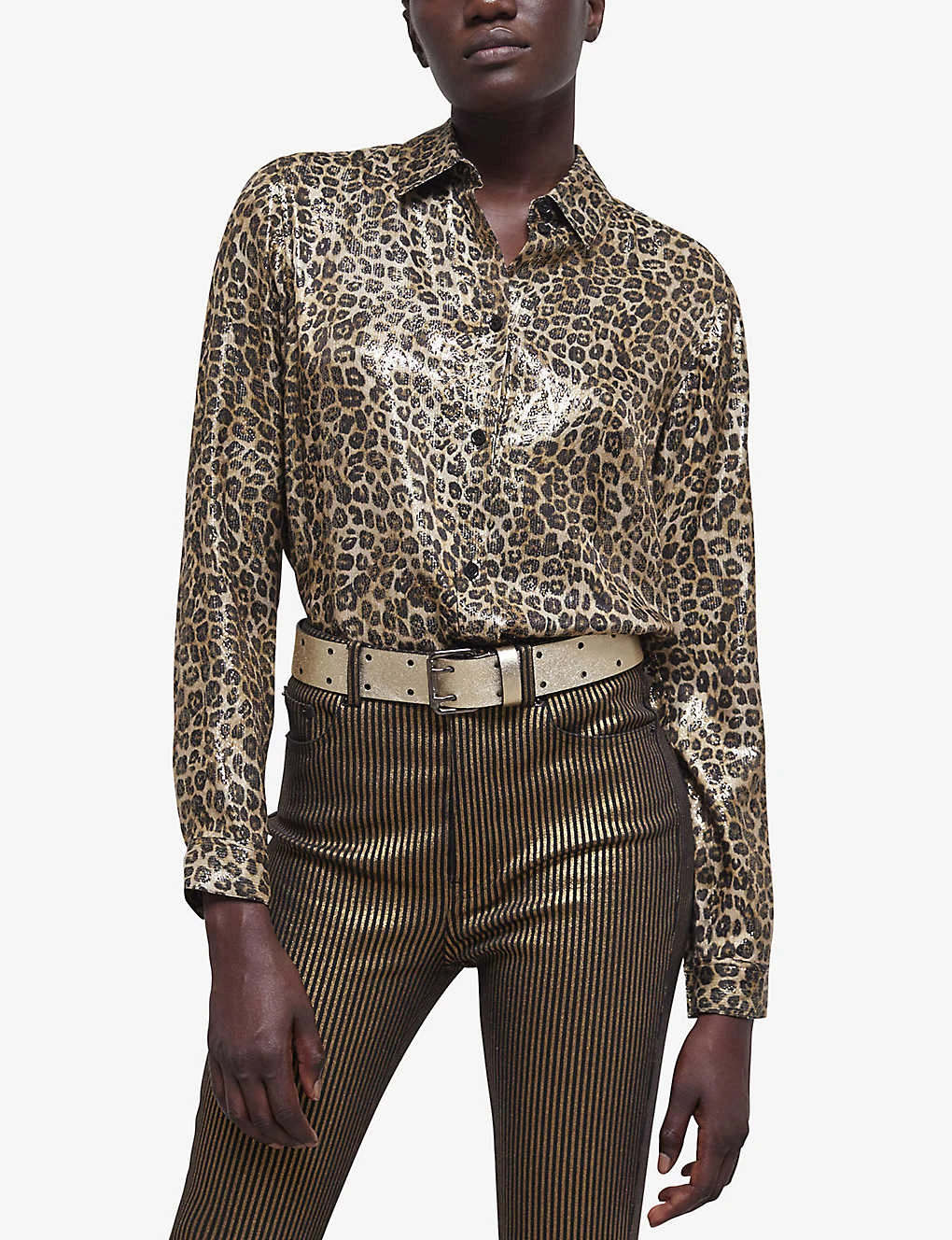- Slim-fit, peak collars, long sleeves, all-over leopard-print