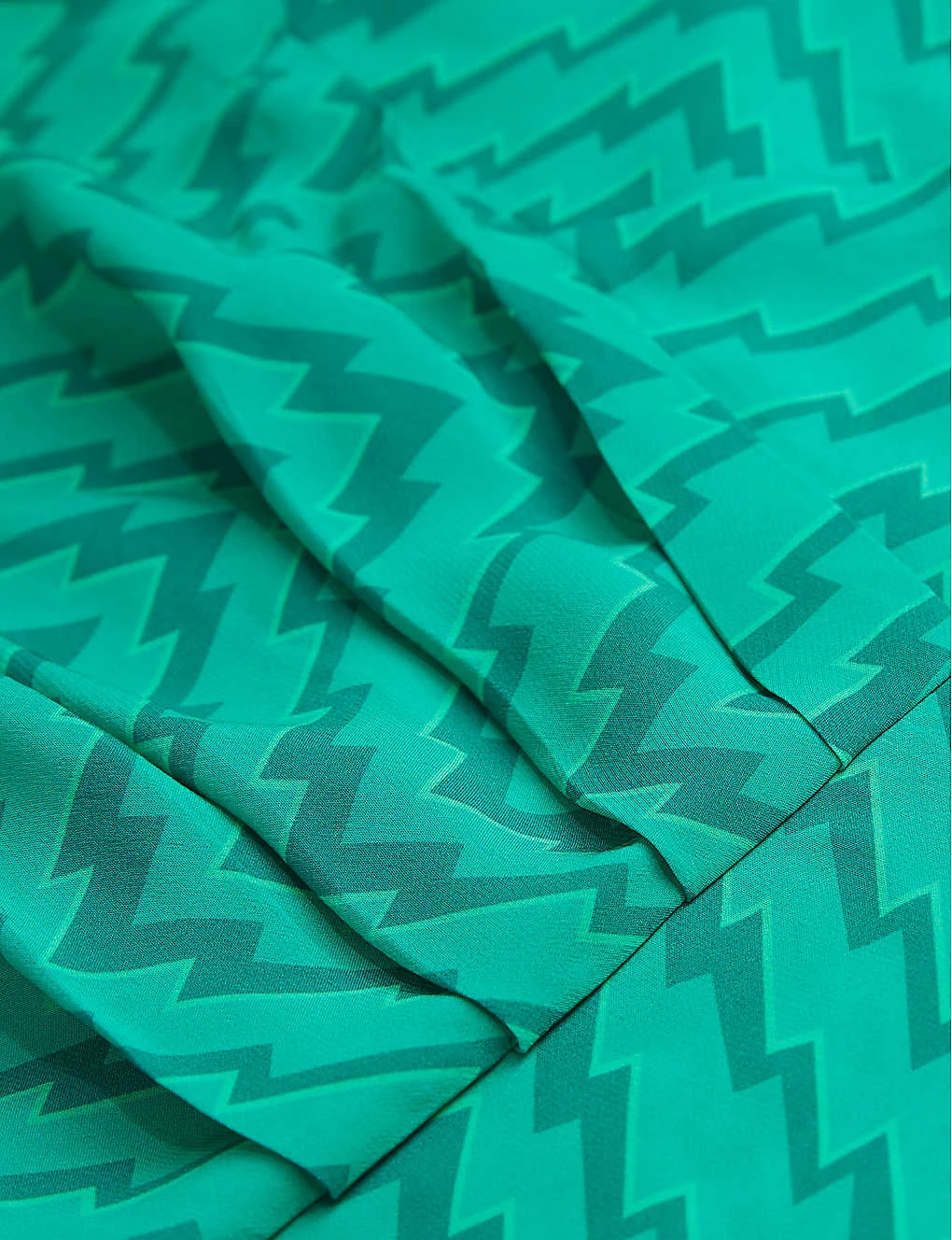 - Fitted waist, draped front, all-over zig-zag print, straight hem