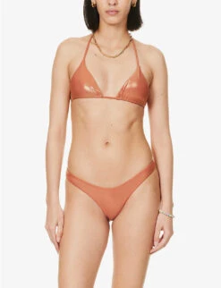- Half-cup. underwired, adjustable straps, interlock weave design, branded gold-toned hardware